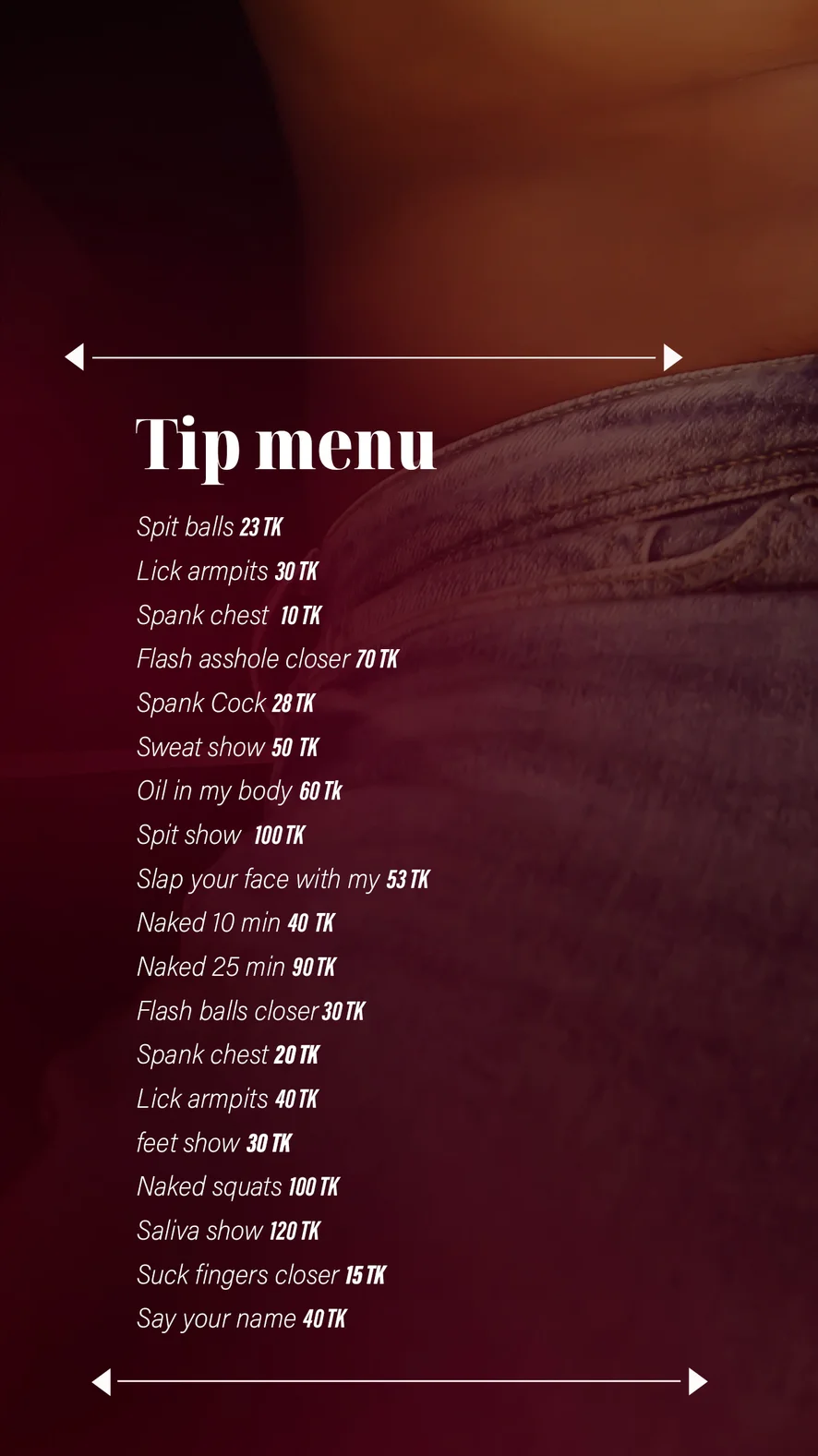 Handjob, Σόου με λάδι, Ποδολαγνεία, Spanking, Βαθμολόγηση πούτσου, Κάμψεις, Ταπείνωση, Οργασμός, Εκσπερμάτωση, Ερωτικός χoρός, Δονητής, Παιχνίδια του σεξ, Γραφείο, SPH, Αυνανισμός, Οδηγίες αυνανισμού, Πρωκτικά παιχνίδια, Κάπνισμα, Στα Τέσσερα, Πρωκτικό, Υπαίθρια, Δάχτυλο