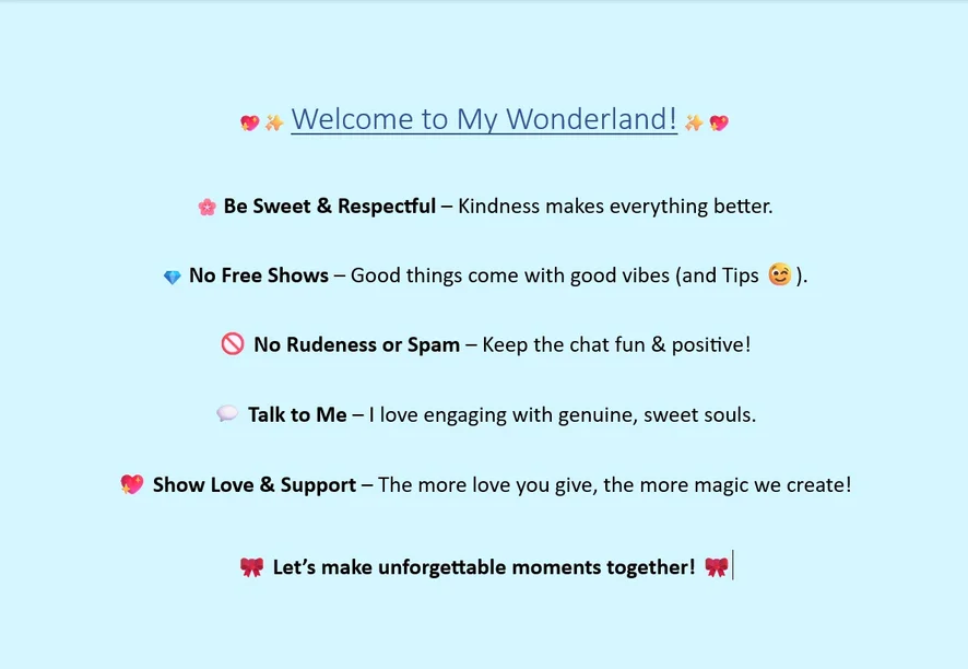 Γυμνόστηθα, Τακούνια, Dancing, Story Telling, Βαθμολόγηση πούτσου, Βρωμόλογα, Δάχτυλο, Spanking, Παιχνίδι Ρόλων, Στα Τέσσερα, Ερωτικός χoρός, Στριπτίζ