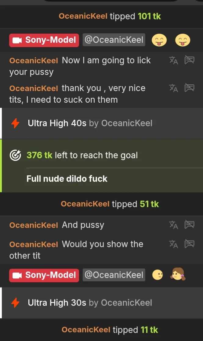 Μαγειρεύοντας, Βαθμολόγηση πούτσου, Cowgirl, Δονητής, Στα Τέσσερα, Βρωμόλογα, Ποδομαλακία, Handjob, Πρωκτικό, Δάχτυλο, Ποδολαγνεία, Μασάζ, Σόου με λάδι, Παιχνίδι Ρόλων, Κάπνισμα, Κορσές, Ερωτικός χoρός, Facesitting, Gagging, Άνοιγμα, Τακούνια, Χύσιμο, Γυμνόστηθα, Χορός twerk, Upskirt, Γιόγκα