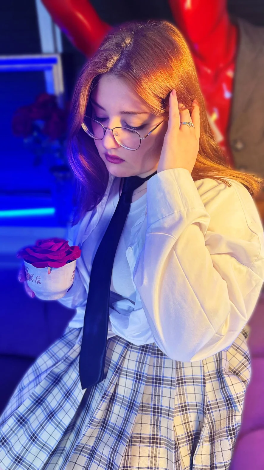 I like to do makeup and dress up beautifully. I like to sculpt from clay and grow flowers, listen to music, dance, relax away from the city, swim.